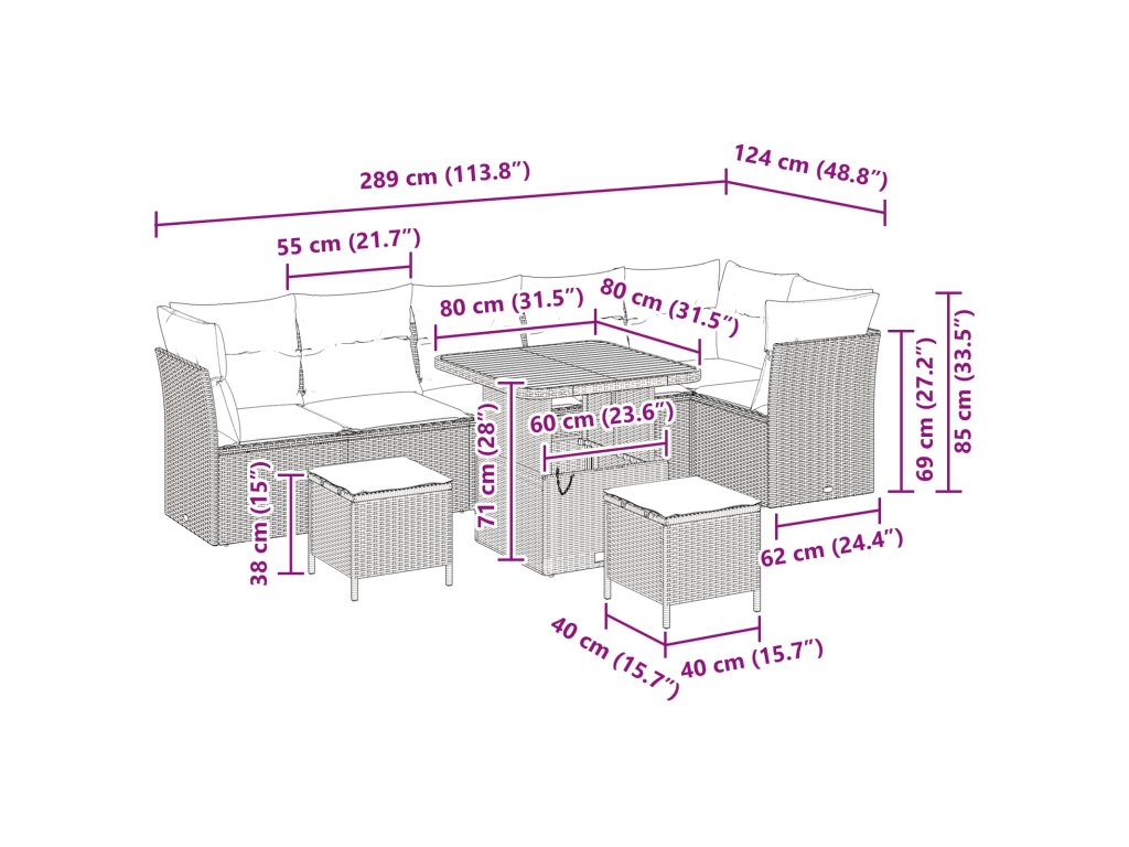 Sada zahradních pohovek 9 pcs Černá polyratan 3361499