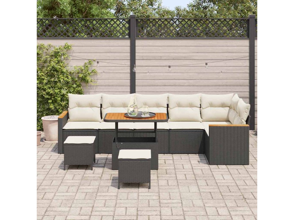 Sada zahradních pohovek 9 pcs Černá polyratan 3363065
