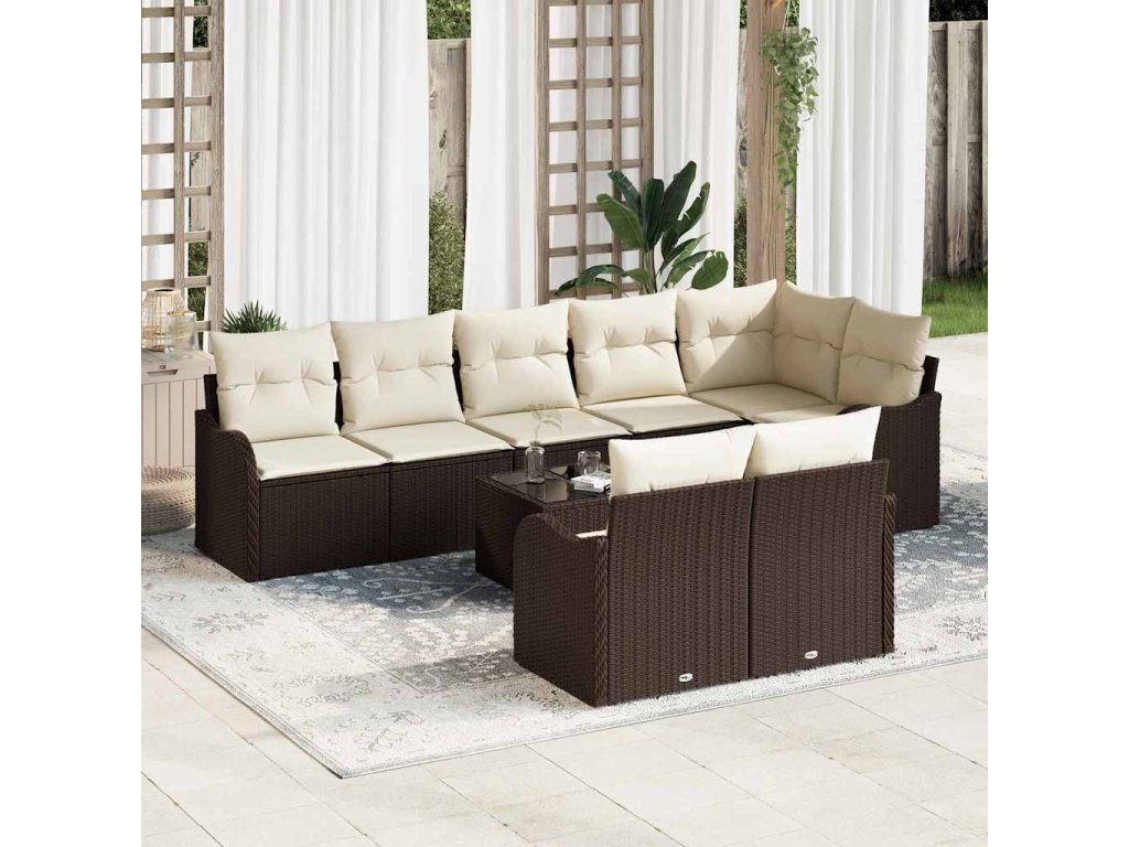 Sada zahradních pohovek 9 pcs Hnědá a bílá Poly ratan 3354427