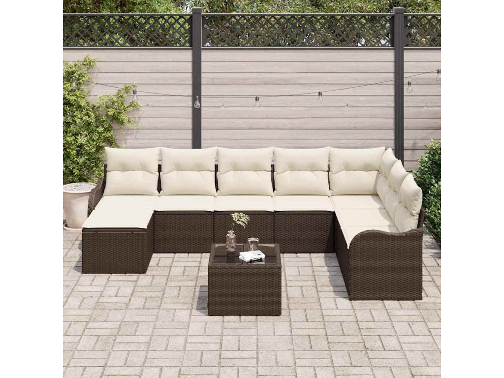 Sada zahradních pohovek 9 pcs Hnědá a bílá Poly ratan 3354497