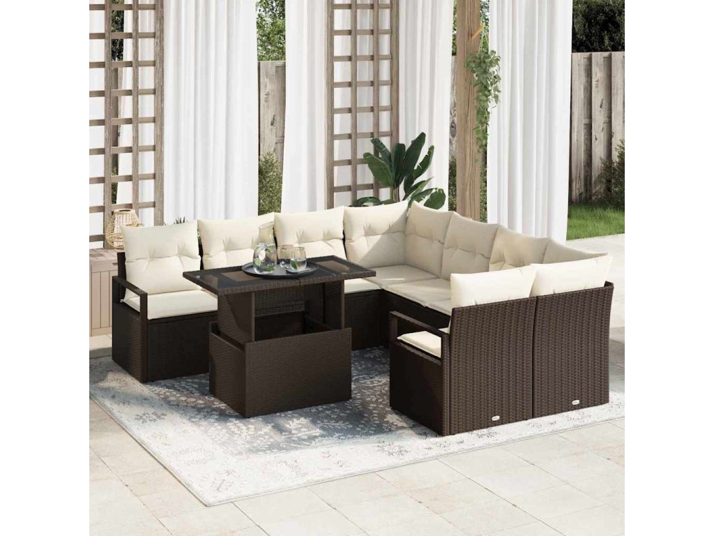 Sada zahradních pohovek 9 pcs Hnědá a krémová polyratan 3348794