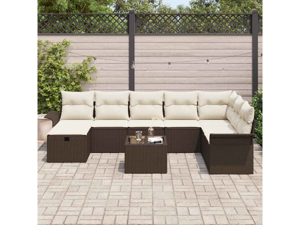 Sada zahradních pohovek 9 pcs Hnědá a krémová polyratan 3358937