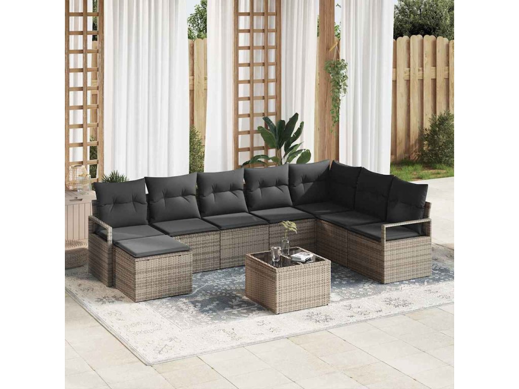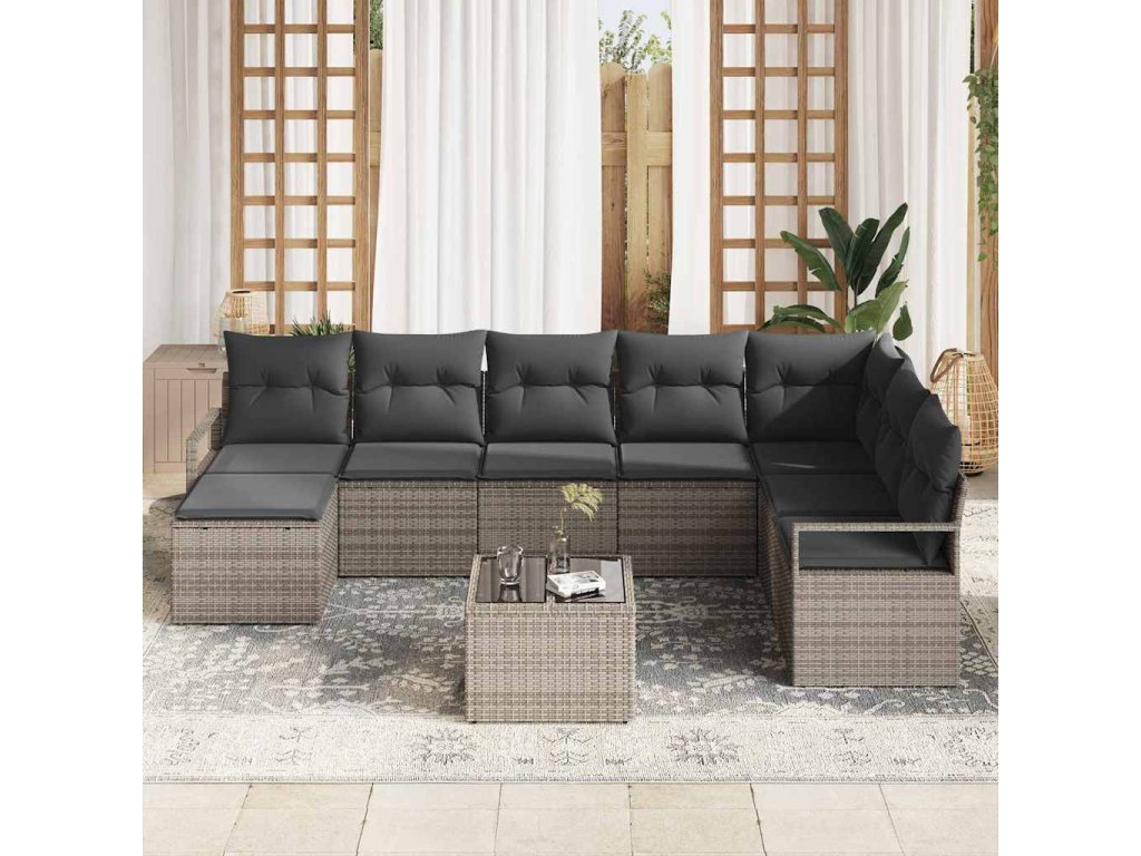 Sada zahradních pohovek 9 pcs Šedá Poly ratan 3346509