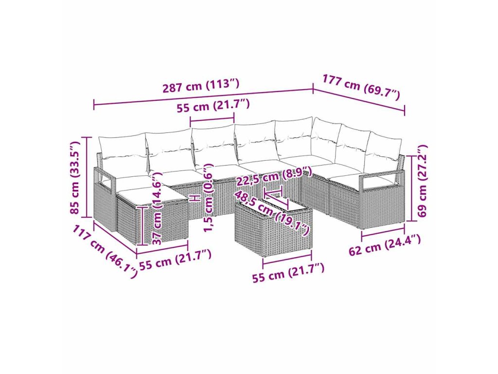 - Adaptabilní použití: Ideální pro terasu nebo útulné koutky v zahradě, tahle sada se přizpůsobí všem tvým potřebám. Je modulární, takže přestavění je snadné a nabízí flexibilitu a pohodlí na jakoukoli příležitost nebo prostor.
