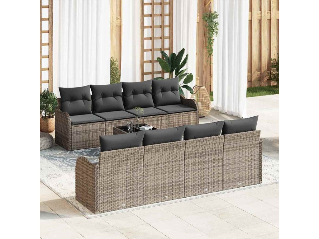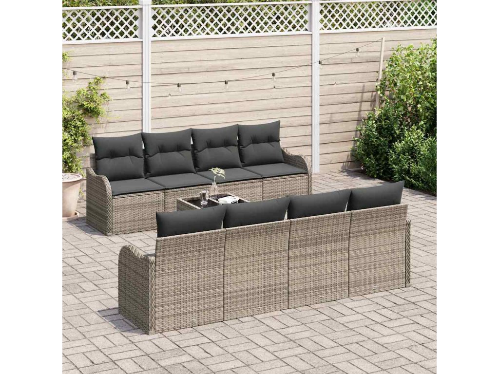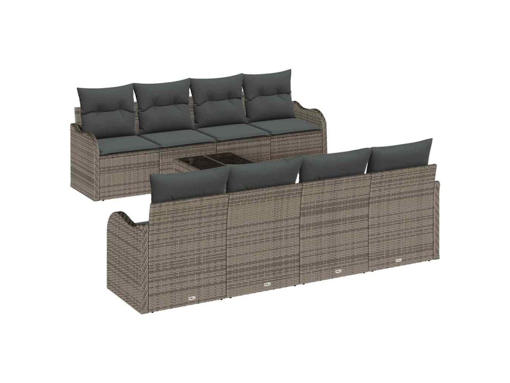 Sada zahradních pohovek 9 pcs Šedá Poly ratan a ocel a sklo 3354298