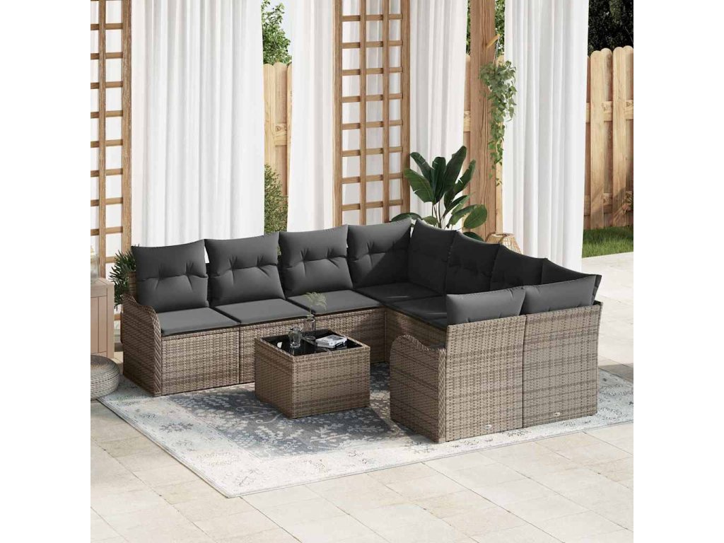 Sada zahradních pohovek 9 pcs Šedá Poly ratan a ocel a sklo 3354308