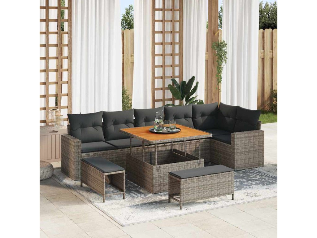 Sada zahradních pohovek 9 pcs Šedá polyratan 3361628