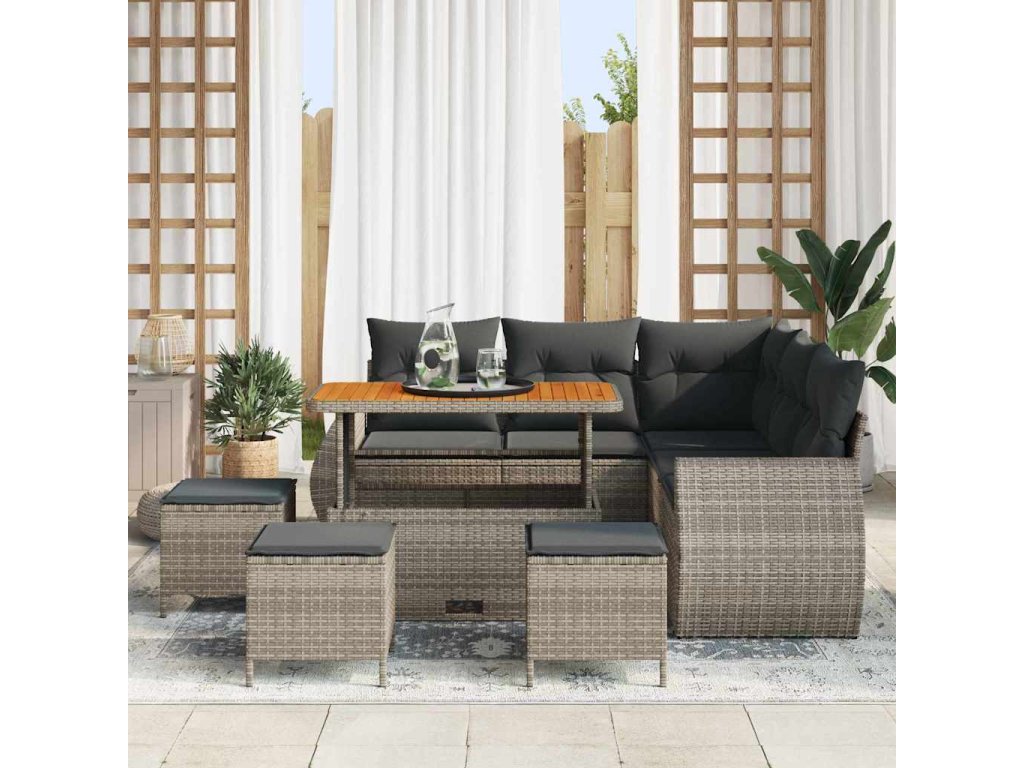 Sada zahradních pohovek 9 pcs Šedá polyratan 3361883