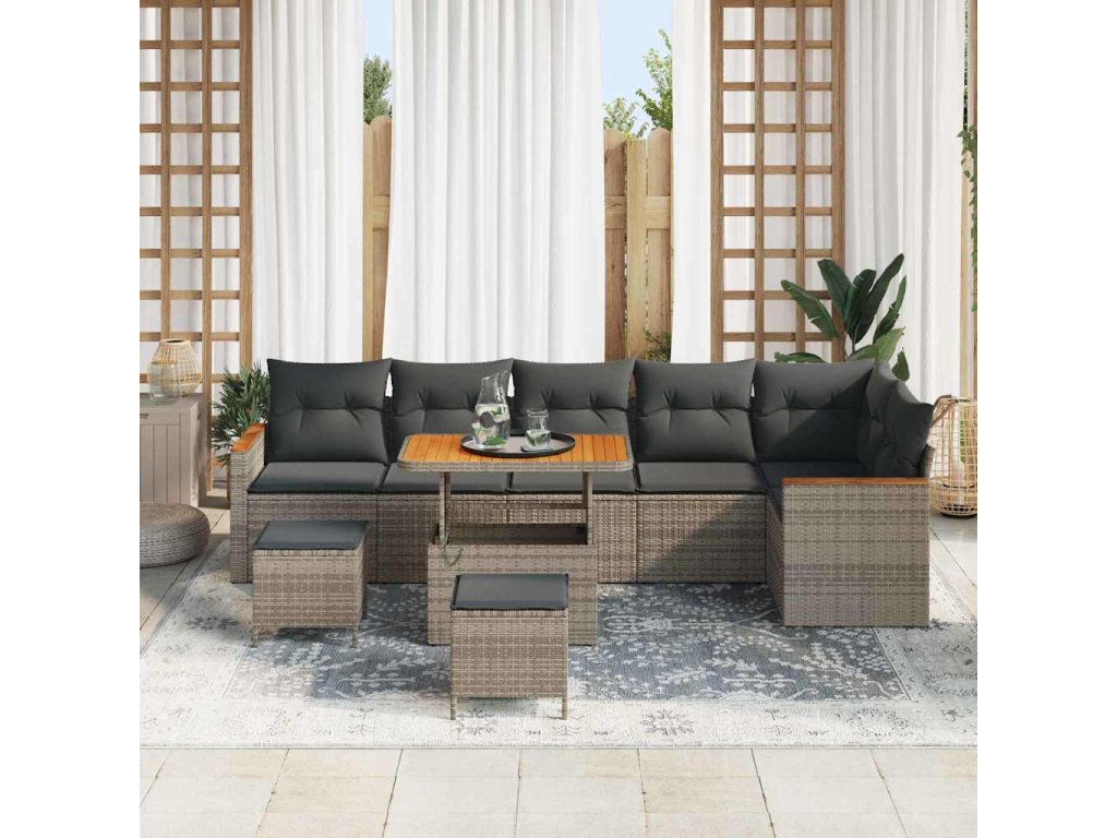 Sada zahradních pohovek 9 pcs Šedá polyratan 3363068