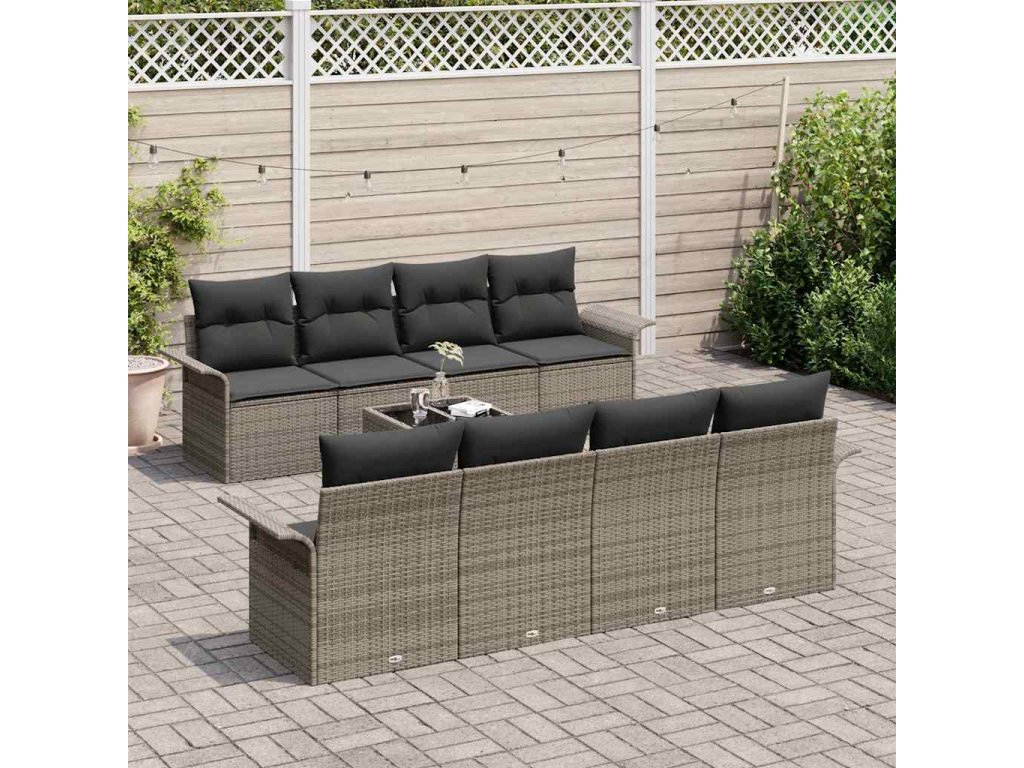 Sada zahradních pohovek 9 pcs Šedá Polyratan a ocel a sklo 3353958