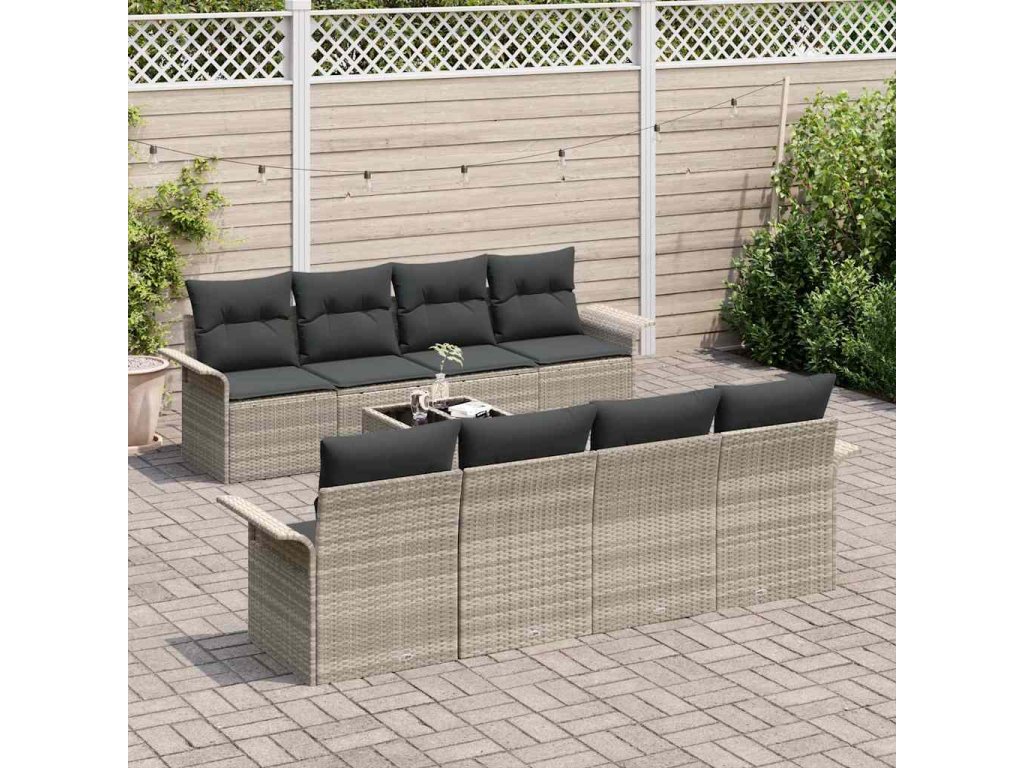 Sada zahradních pohovek 9 pcs Světle šedá Poly ratan 3345292