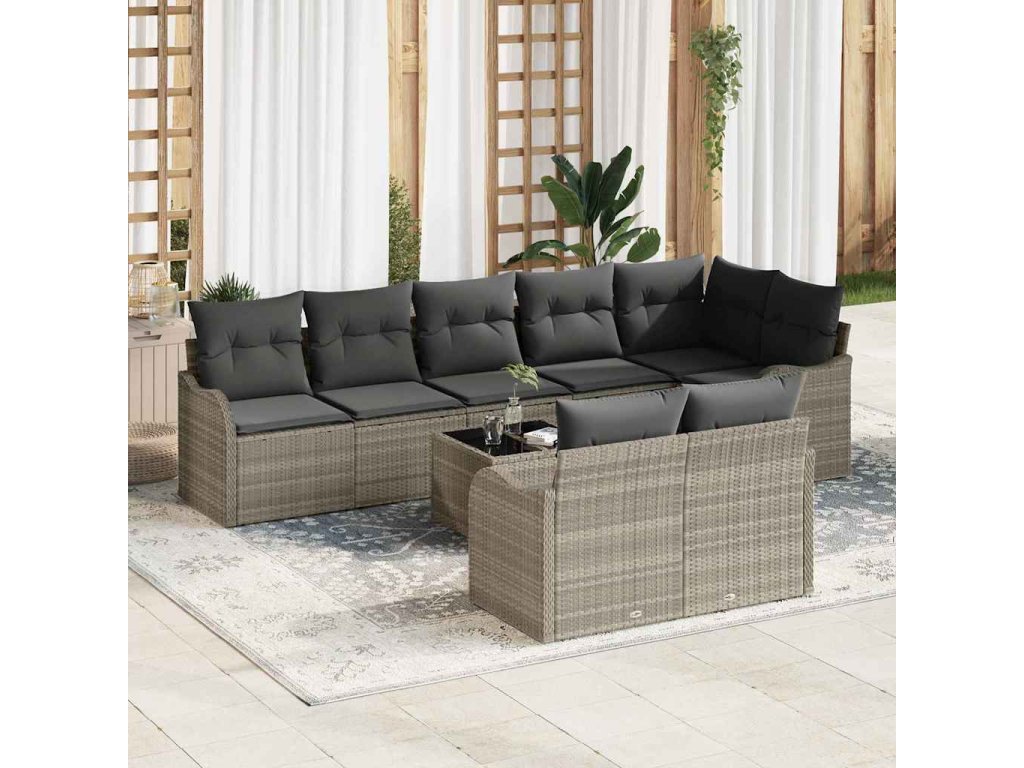 Sada zahradních pohovek 9 pcs Světle šedá Poly ratan 3354431