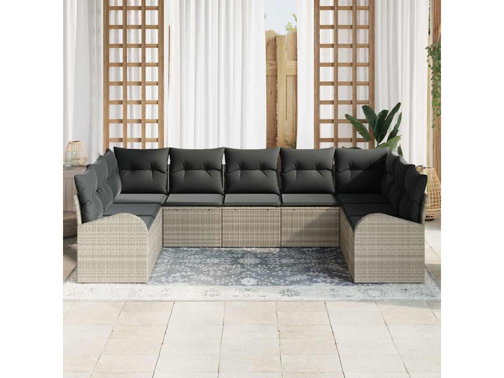 Sada zahradních pohovek 9 pcs Světle šedá Poly ratan 3354871