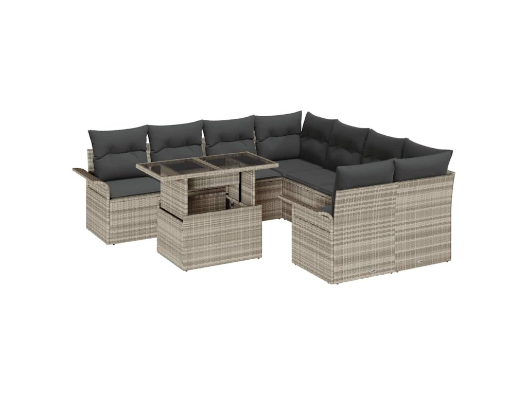 Sada zahradních pohovek 9 pcs Světle šedá Poly ratan 3356995
