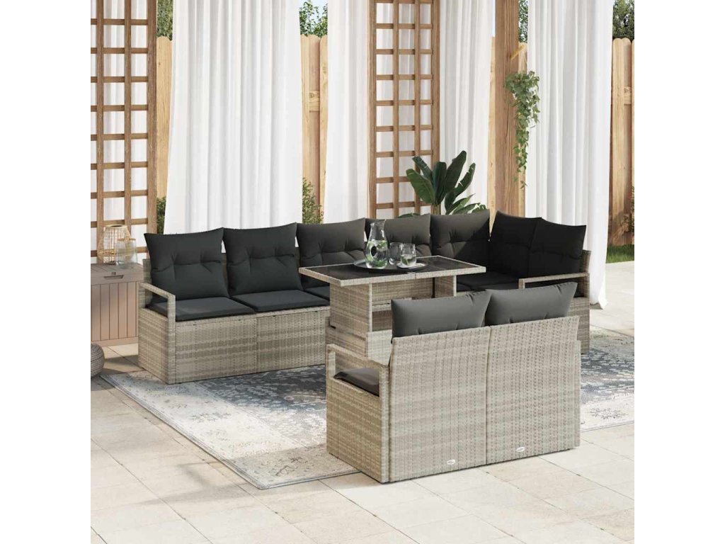 Sada zahradních pohovek 9 pcs Světle šedá Poly ratan 3357585
