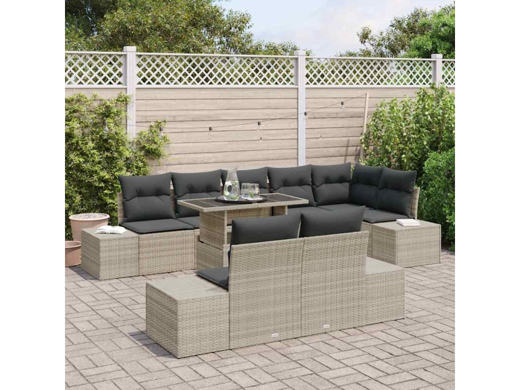 Sada zahradních pohovek 9 pcs Světle šedá Poly ratan 3357945