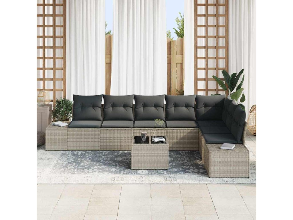 Sada zahradních pohovek 9 pcs Světle šedá Poly ratan 3360773