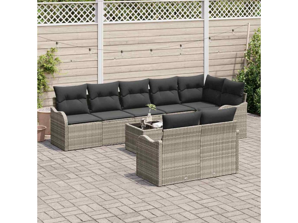 Sada zahradních pohovek 9 pcs Světle šedá polyratan 3345762