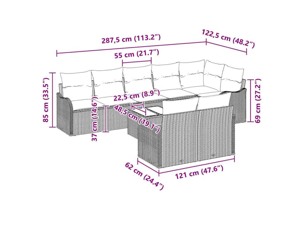 - 9 x Zádový polštář: 55 x 55 cm (D x Š)