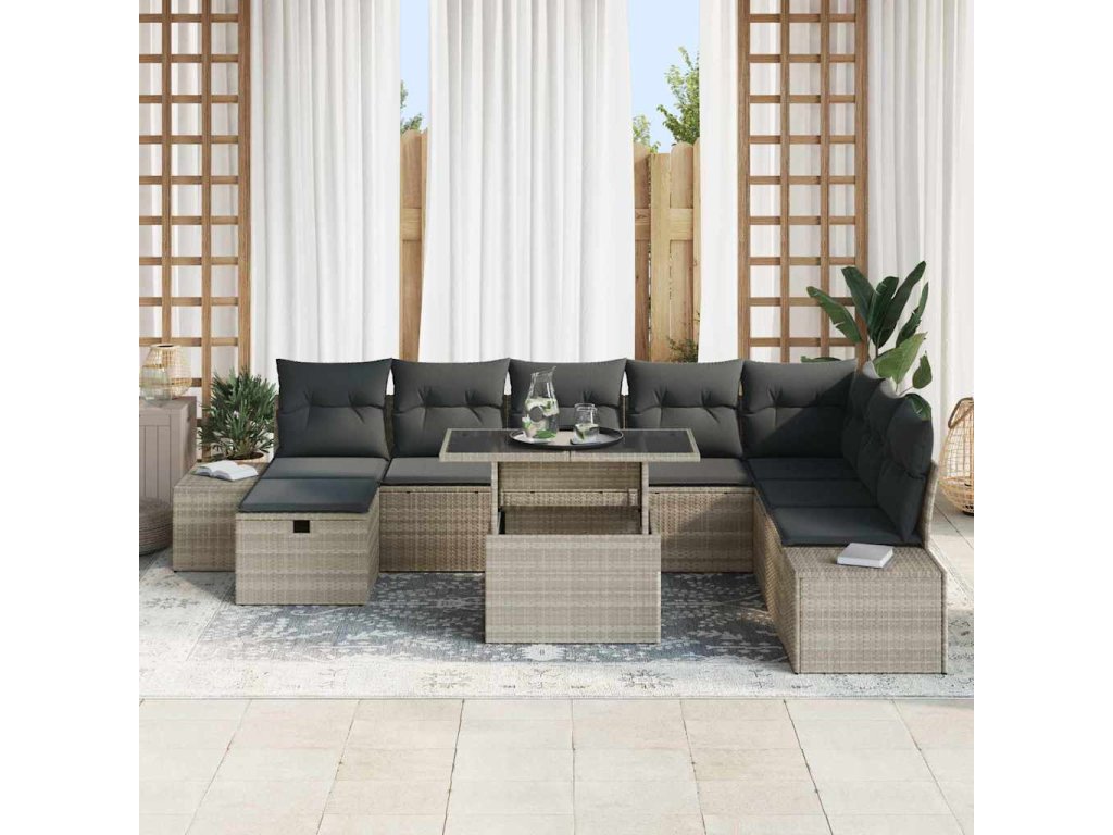 Sada zahradních pohovek 9 pcs Světle šedá polyratan 3361231
