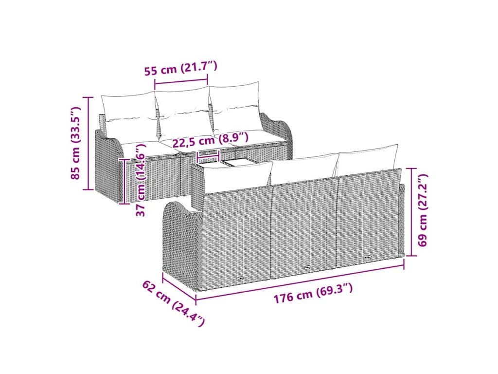 - Údržba: Udržujte jeho skvělý vzhled otřením vlhkým hadříkem a vyhněte se tvrdým chemikáliím. Když se nepoužívá, zakryjte ho, aby byl chráněn a vydržel co nejdéle. Polštáře mají odnímatelné potahy pro snadné praní, což usnadňuje péči o set a udržení jeho skvělého stavu.
