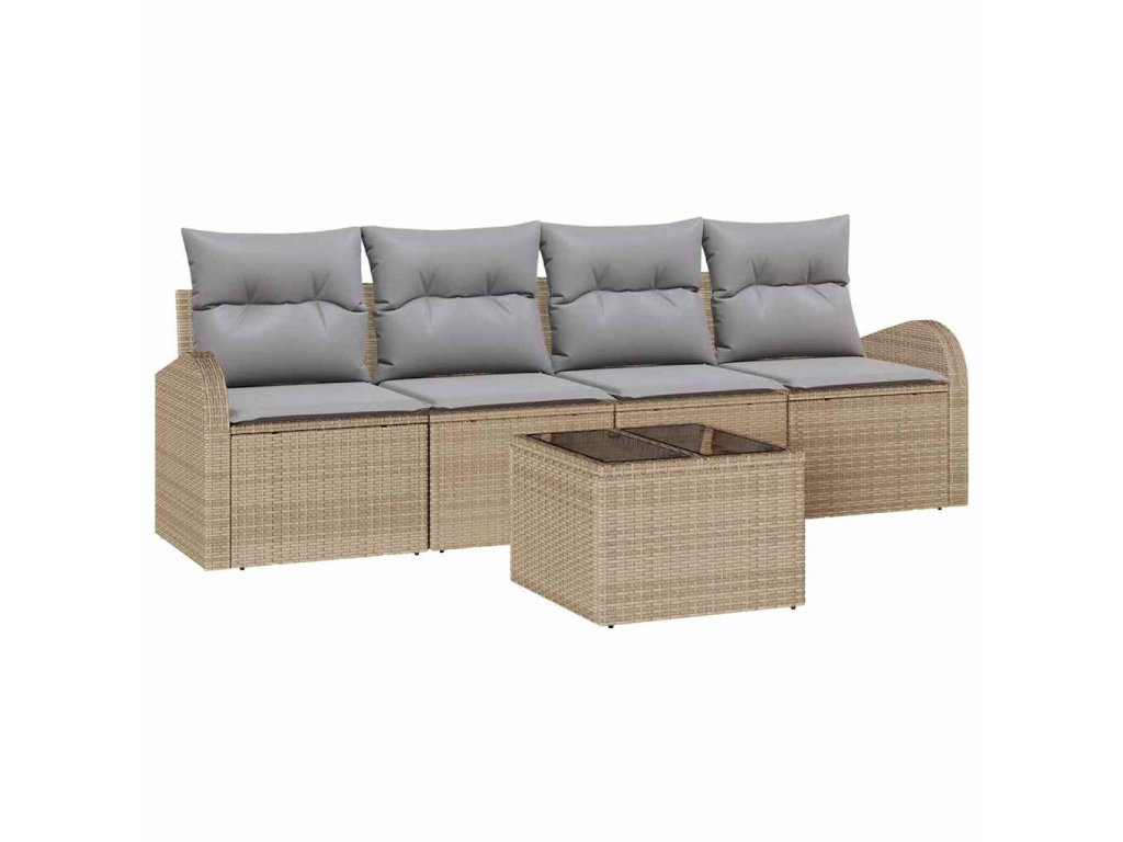 - Odolné materiály Tento pohovkový set je vyrobený z kvalitního poly ratanu, který je odolný vůči povětrnostním vlivům, takže zůstane v pohodě za různých podmínek – ideální pro celoroční užití na terase nebo zahradě.