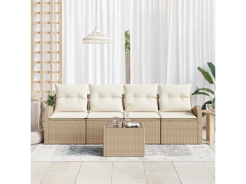 - Odolné materiály Tento pohovkový set je vyrobený z kvalitního poly ratanu, který je odolný vůči povětrnostním vlivům, takže zůstane v pohodě za různých podmínek – ideální pro celoroční užití na terase nebo zahradě.