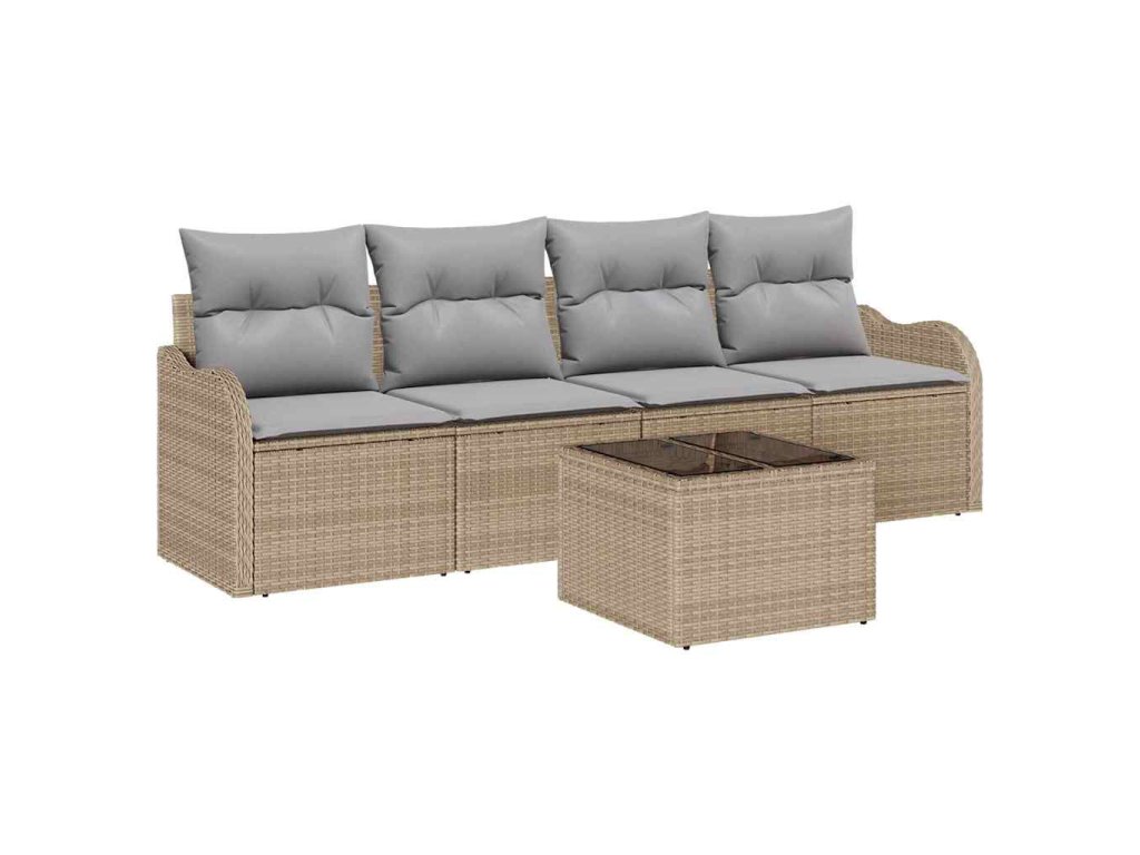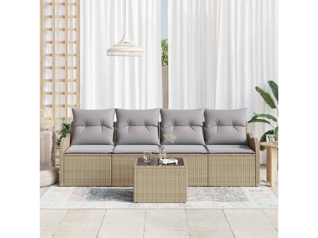 - Zahrnuté komponenty: Tato souprava zahrnuje dvě středové sedadla, dvě koncové pohovky a stůl z tvrzeného skla, takže si můžeš sezení uspořádat přesně podle svých představ. Každý kousek se skvěle doplňuje, takže tvoje venkovní prostor vypadá konzistentně. Hotový a elegantní zadní panel dává možnost flexibilního uspořádání bez kompromisů v designu.