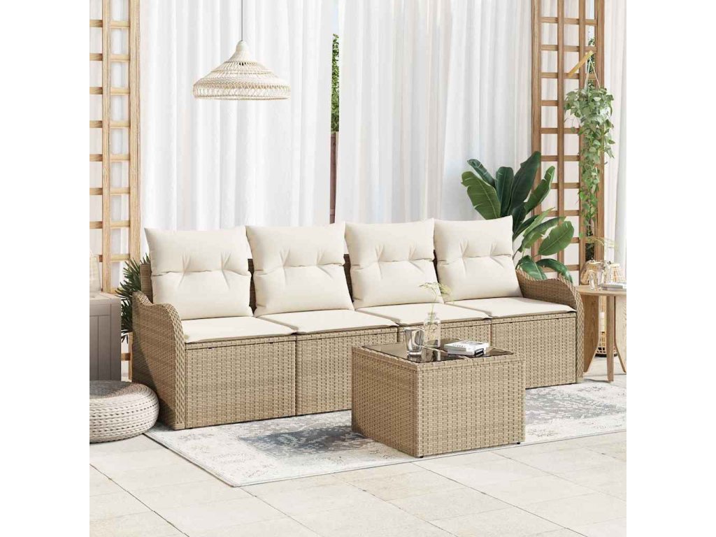 - Zahrnuté komponenty: Tato souprava zahrnuje dvě středové sedadla, dvě koncové pohovky a stůl z tvrzeného skla, takže si můžeš sezení uspořádat přesně podle svých představ. Každý kousek se skvěle doplňuje, takže tvoje venkovní prostor vypadá konzistentně. Hotový a elegantní zadní panel dává možnost flexibilního uspořádání bez kompromisů v designu.