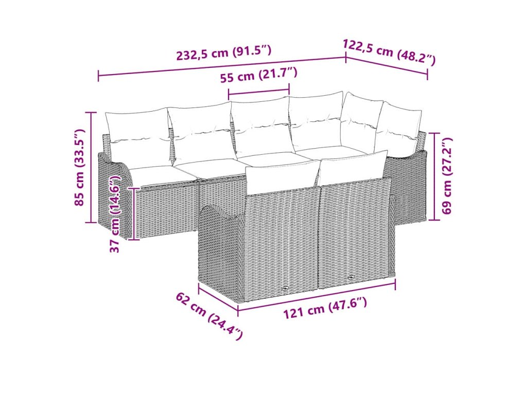 Tento zahradní pohovkový set spojuje moderní vzhled s praktickými funkcemi, navržený tak, aby vylepšil tvůj venkovní prostor. Pohodlně se sem vejde až 7 lidí, takže je super pro rodinné akce nebo laxní chvíle s kamarády na zahradě nebo terase. S elegantním pleteným designem dodává tvému venkovnímu prostoru šmrnc. Pevné materiály jsou vyrobeny tak, aby vydržely, a poskytují pohodlné sezení, jistě tě přimějí k relaxaci a užívání si přírody.