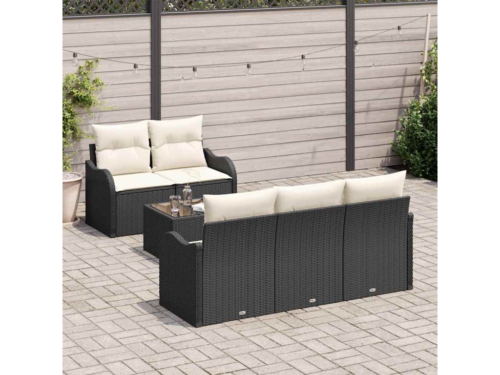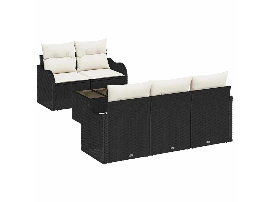 - Zahrnuté komponenty: Souprava obsahuje střední sedadlo, čtyři pohovky s opěrkami a robustní stůl. Skleněná deska stolu přidává elegantní a trvanlivý povrch pro nápoje a dekorace. Křivky a opěrky z poly ratanu zvyšují pohodlí pro dlouhé posezení. Ocelové nohy garantují pevnou oporu na jakémkoliv povrchu.