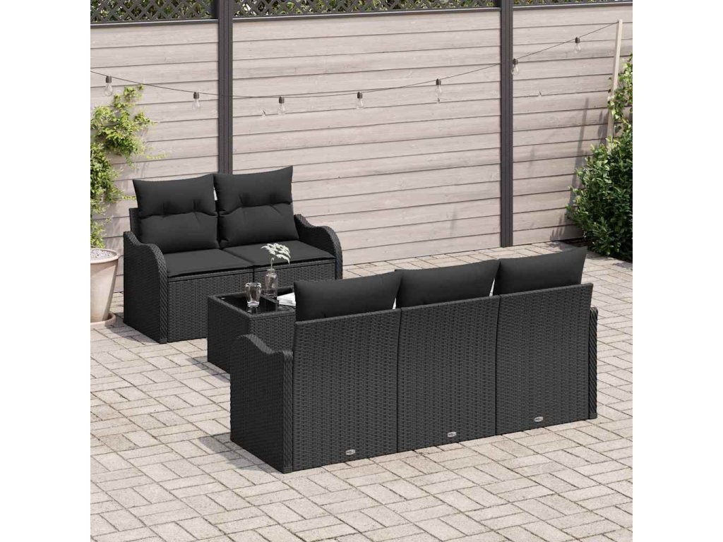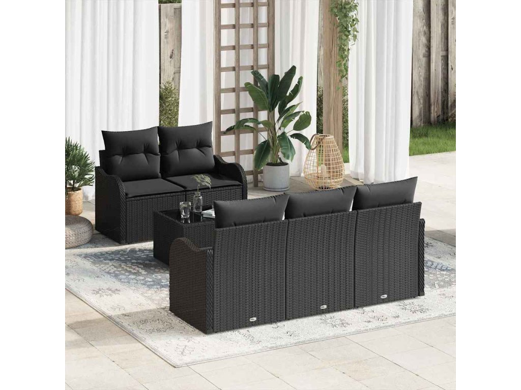 - Zahrnuté komponenty: Souprava obsahuje střední sedadlo, čtyři pohovky s opěrkami a robustní stůl. Skleněná deska stolu přidává elegantní a trvanlivý povrch pro nápoje a dekorace. Křivky a opěrky z poly ratanu zvyšují pohodlí pro dlouhé posezení. Ocelové nohy garantují pevnou oporu na jakémkoliv povrchu.