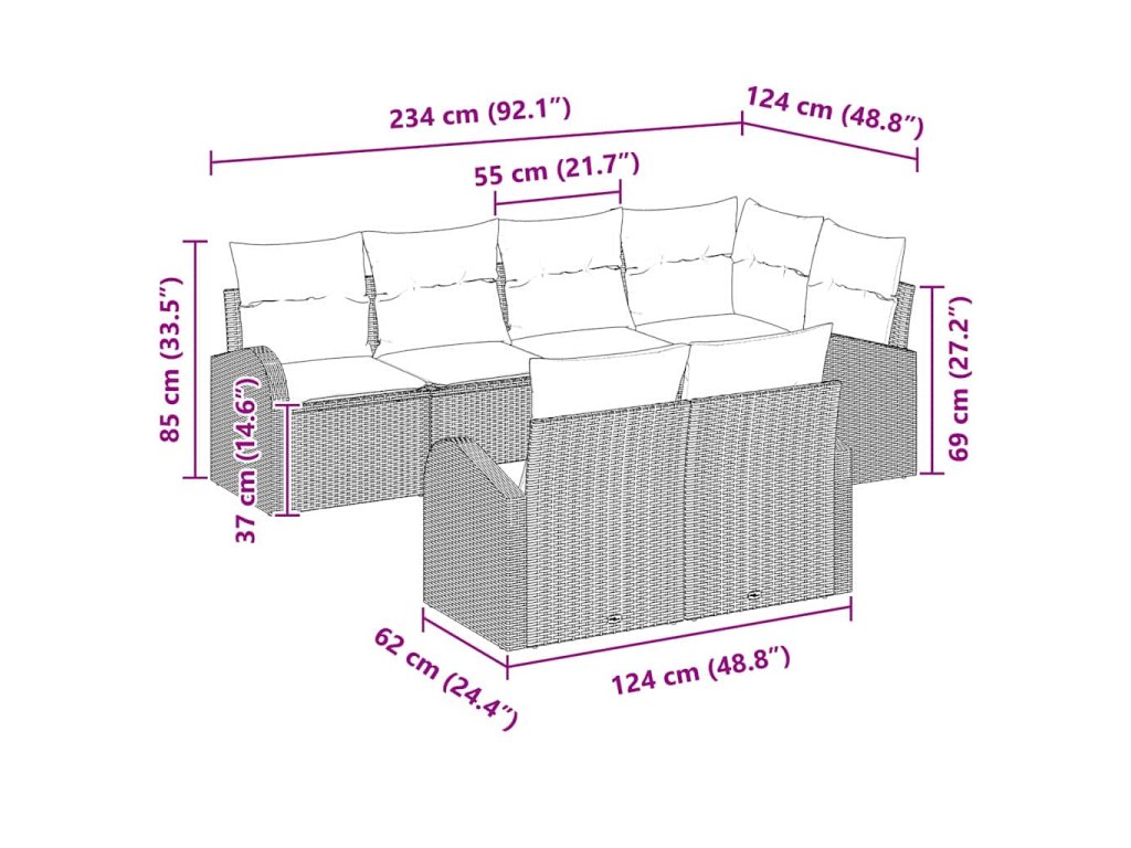 - Materiál: Vyrobeno z poly ratanu, tato sofa sada přináší kvalitní vzhled a odolnost do vašeho venkovního prostoru. Její robustní konstrukce snadno odolává povětrnostním vlivům, zůstává atraktivní každé roční období. Odolnost poly ratanu vůči UV záření znamená, že sada si po dlouhou dobu zachová svůj vzhled.