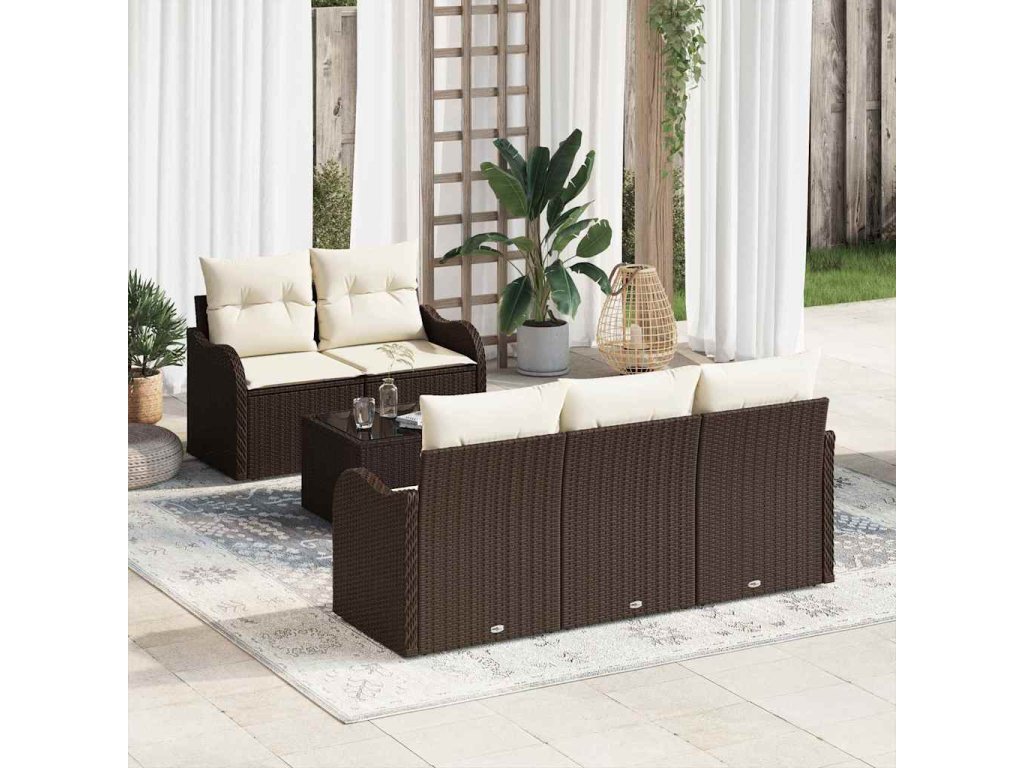 - Zahrnuté komponenty: Souprava obsahuje střední sedadlo, čtyři pohovky s opěrkami a robustní stůl. Skleněná deska stolu přidává elegantní a trvanlivý povrch pro nápoje a dekorace. Křivky a opěrky z poly ratanu zvyšují pohodlí pro dlouhé posezení. Ocelové nohy garantují pevnou oporu na jakémkoliv povrchu.
