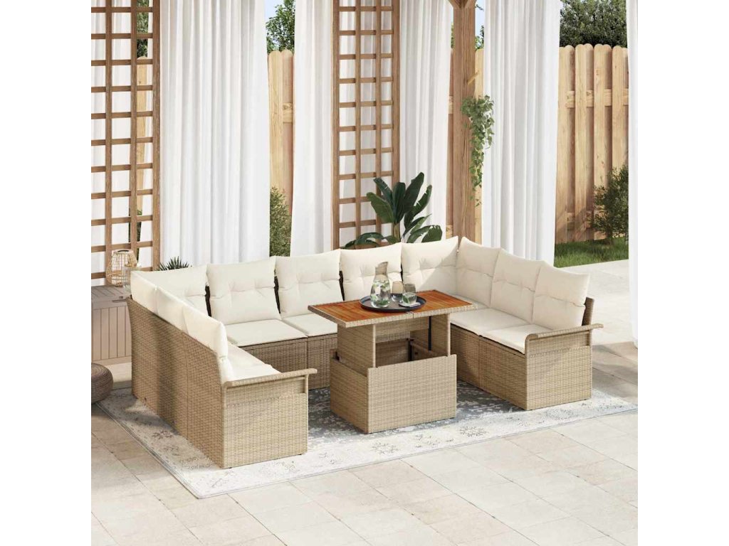 Sada zahradních pohovek s polštářem 10 pcs béžová a krémová 3349378