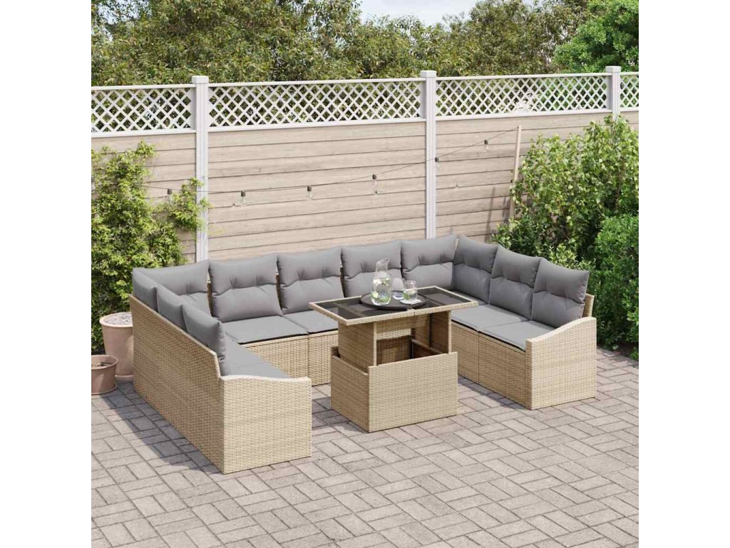 Sada zahradních pohovek s polštářem 10 pcs Béžová a Světle šedá 3357803