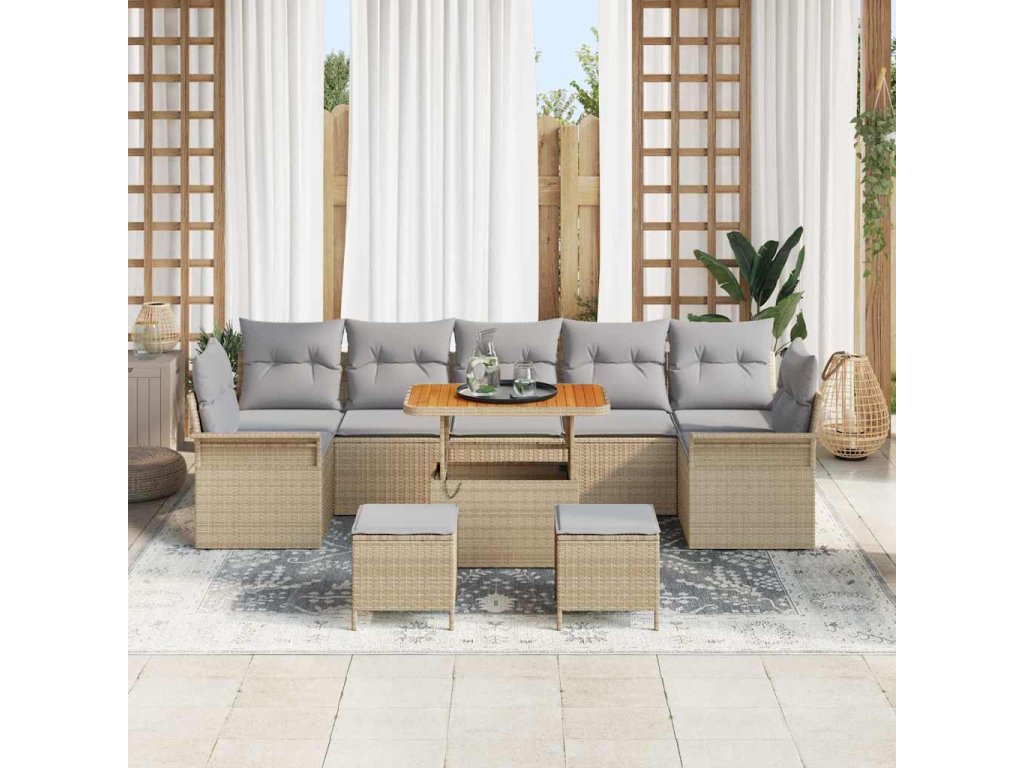 Sada zahradních pohovek s polštářem 10 pcs Béžová a Světle šedá 3364072