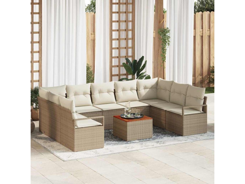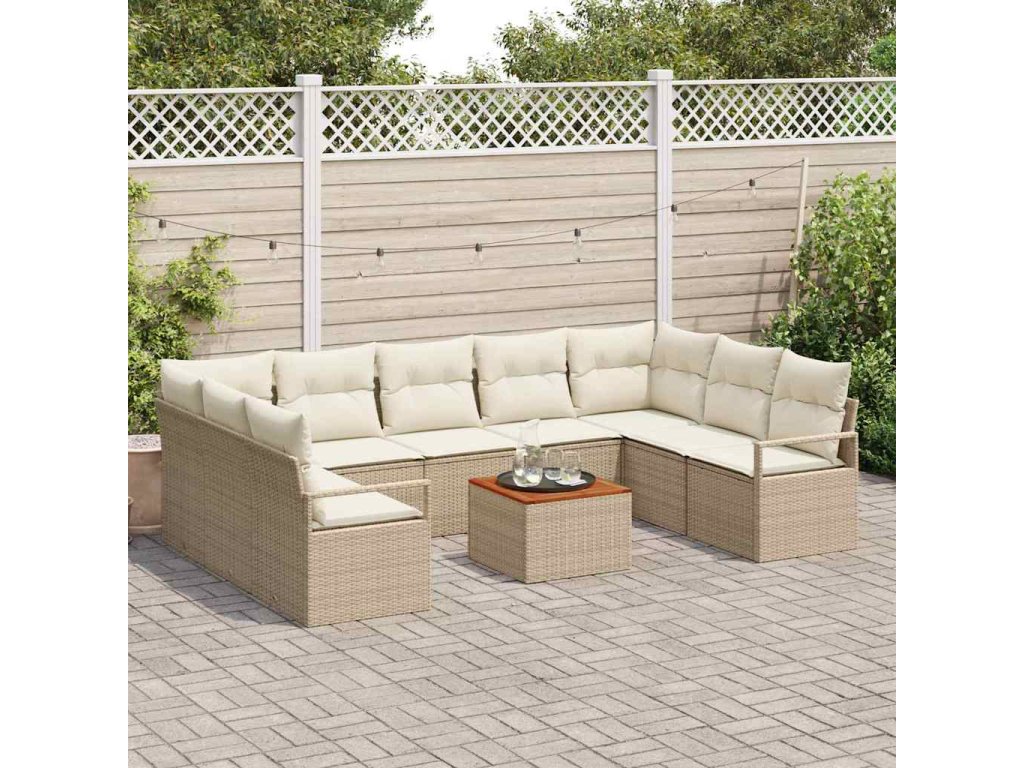 Sada zahradních pohovek s polštářem 10 pcs Béžová Poly ratan 3347750