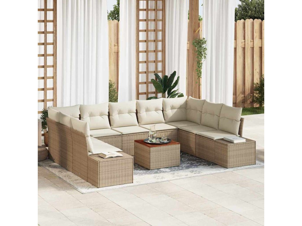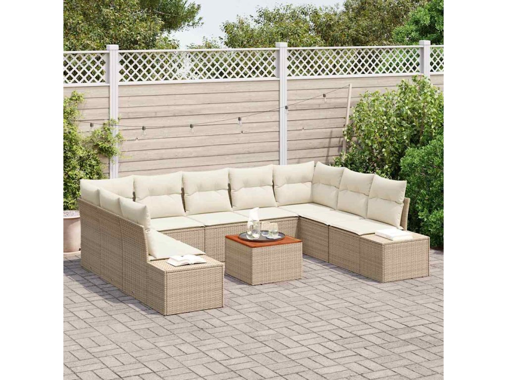 Sada zahradních pohovek s polštářem 10 pcs Béžová Poly ratan 3348002