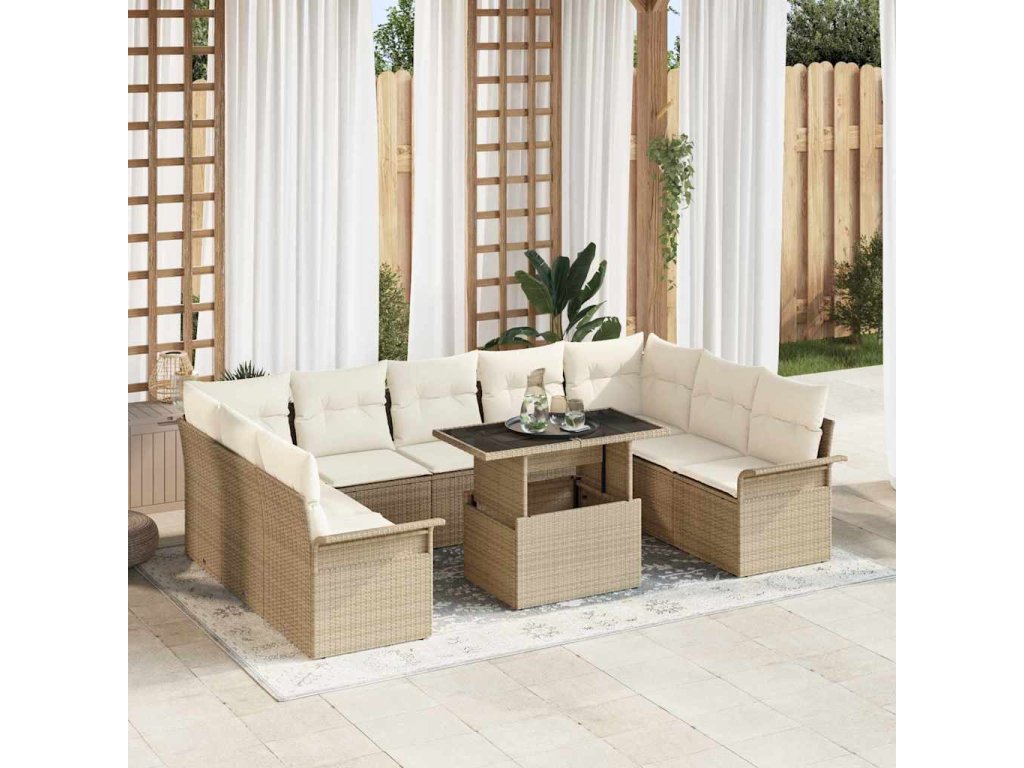 Sada zahradních pohovek s polštářem 10 pcs Béžová Poly ratan 3348347