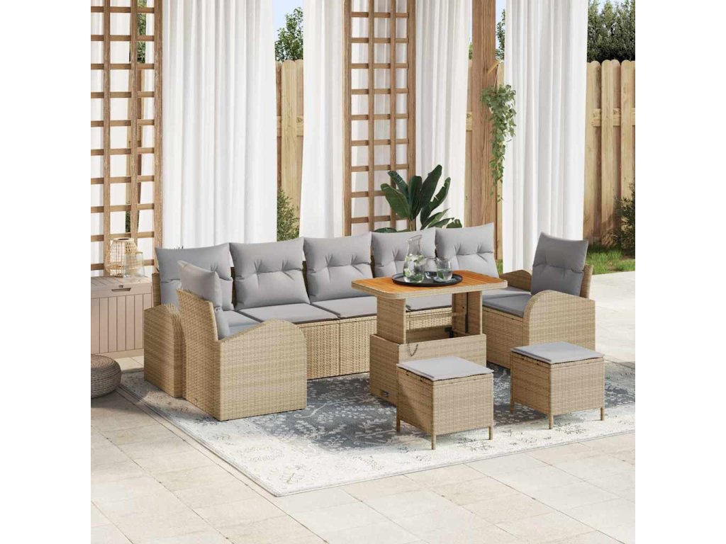 Sada zahradních pohovek s polštářem 10 pcs Béžová Poly ratan 3362382