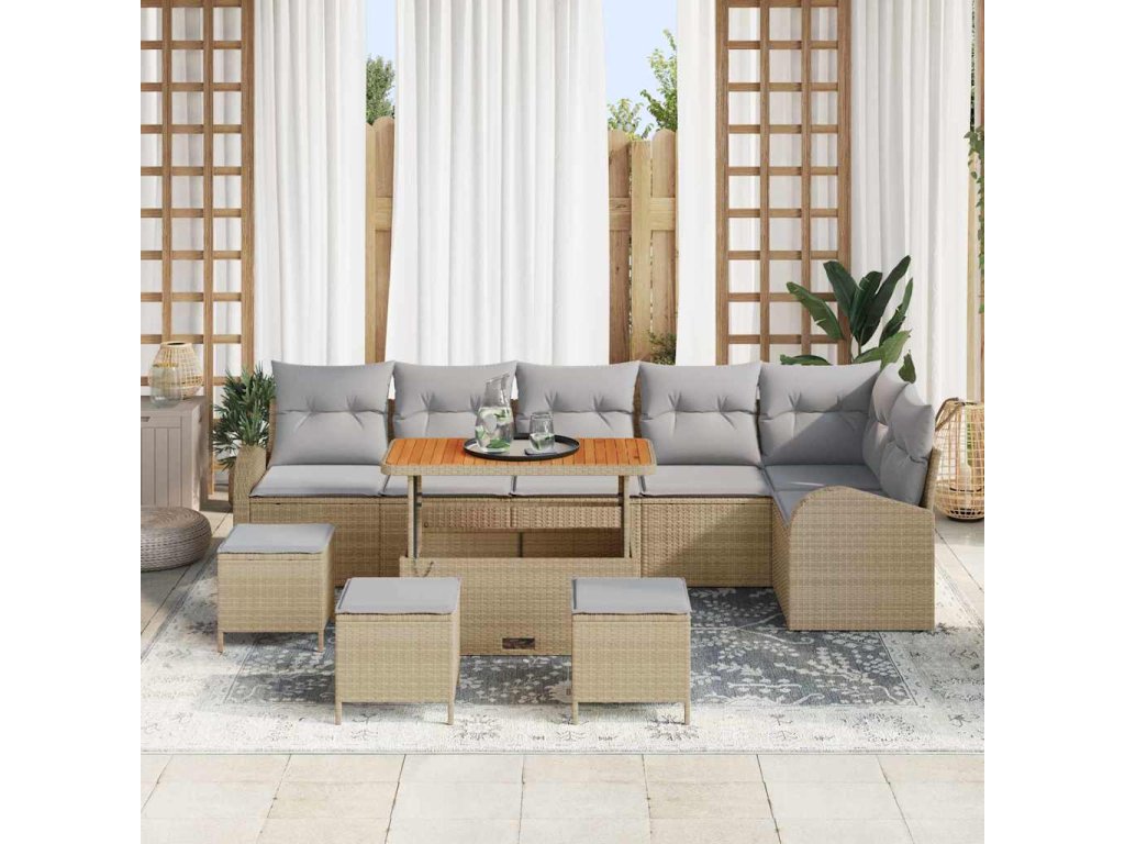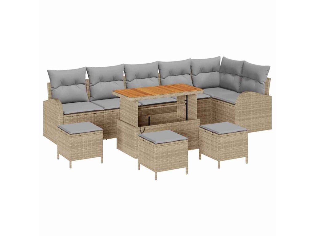Sada zahradních pohovek s polštářem 10 pcs Béžová Poly ratan 3362422