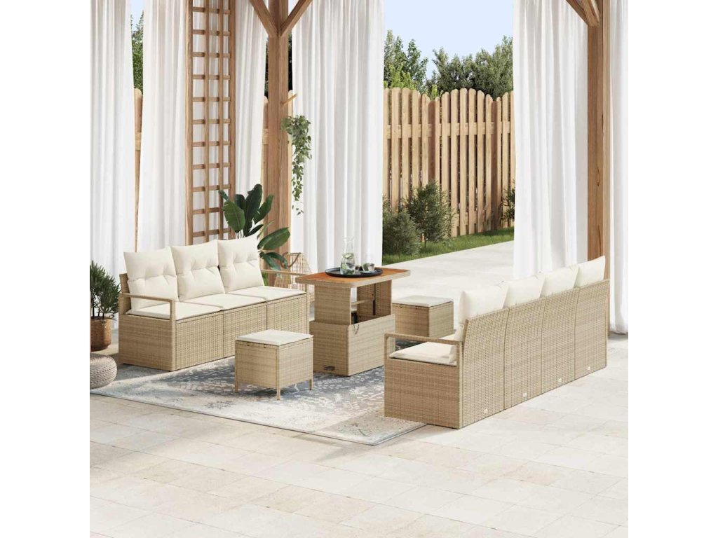 Sada zahradních pohovek s polštářem 10 pcs Béžová Poly ratan 3362491