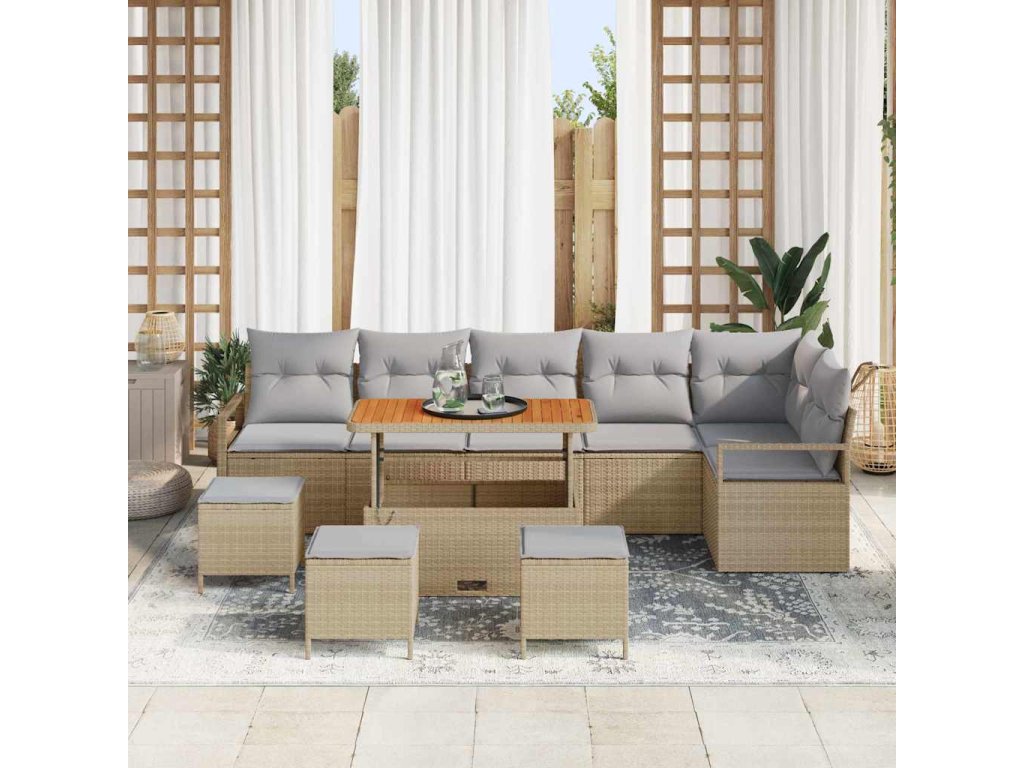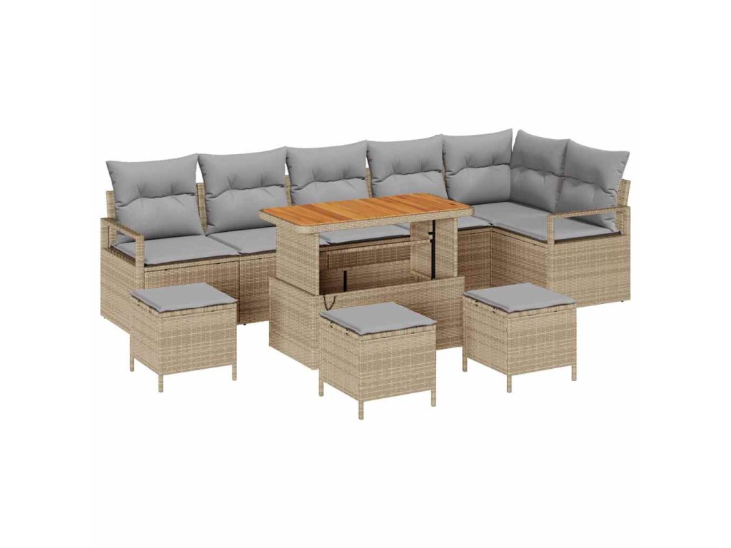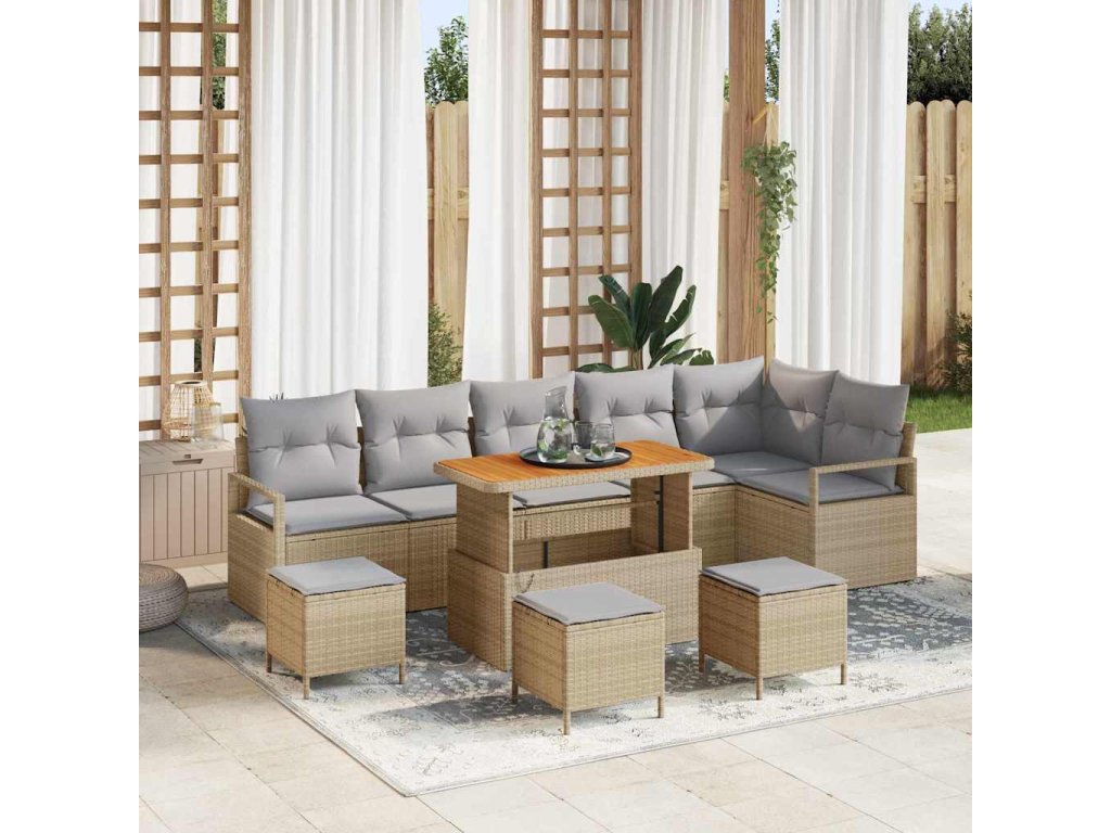 Sada zahradních pohovek s polštářem 10 pcs Béžová Poly ratan 3362552