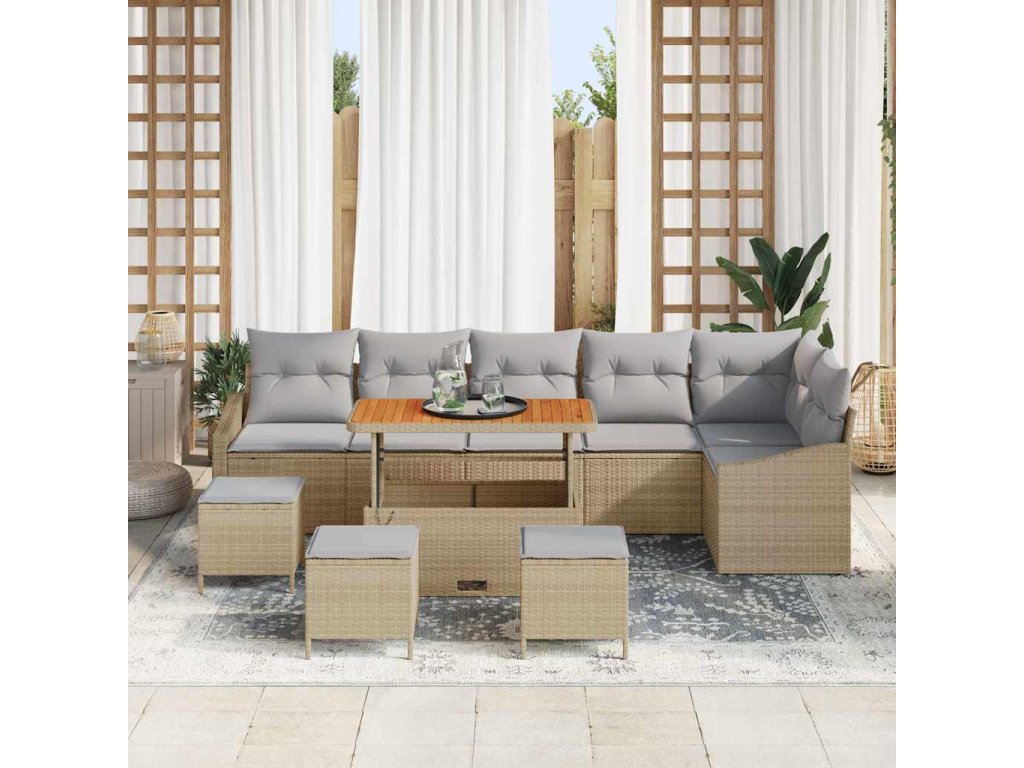 Sada zahradních pohovek s polštářem 10 pcs Béžová Poly ratan 3362682