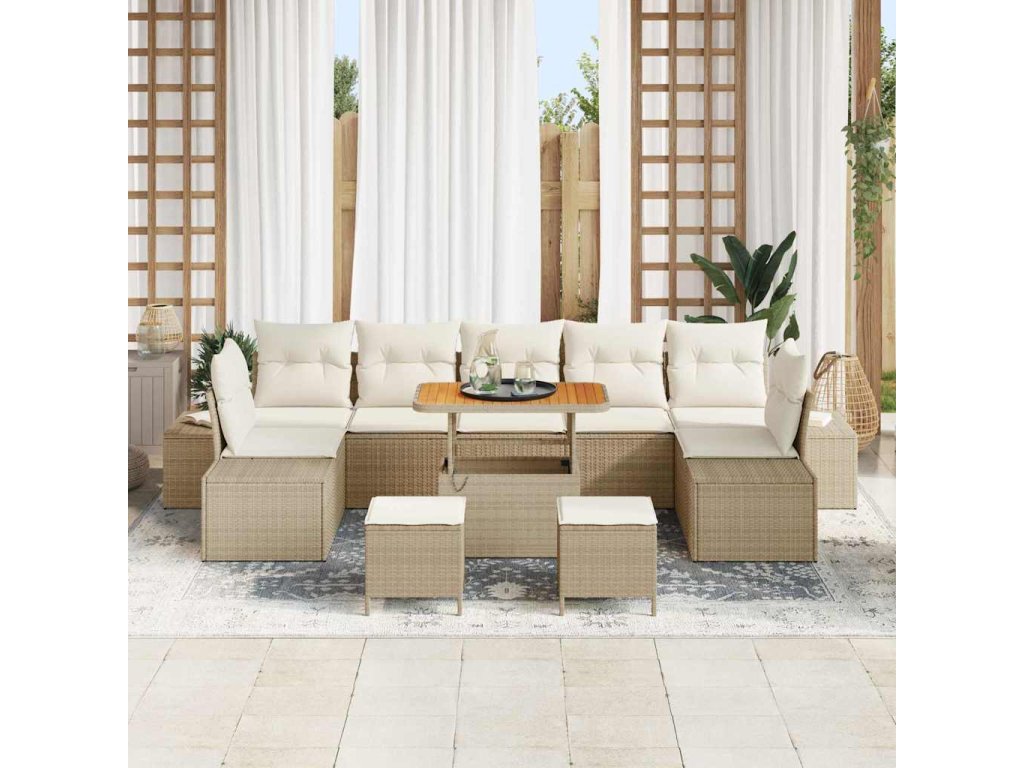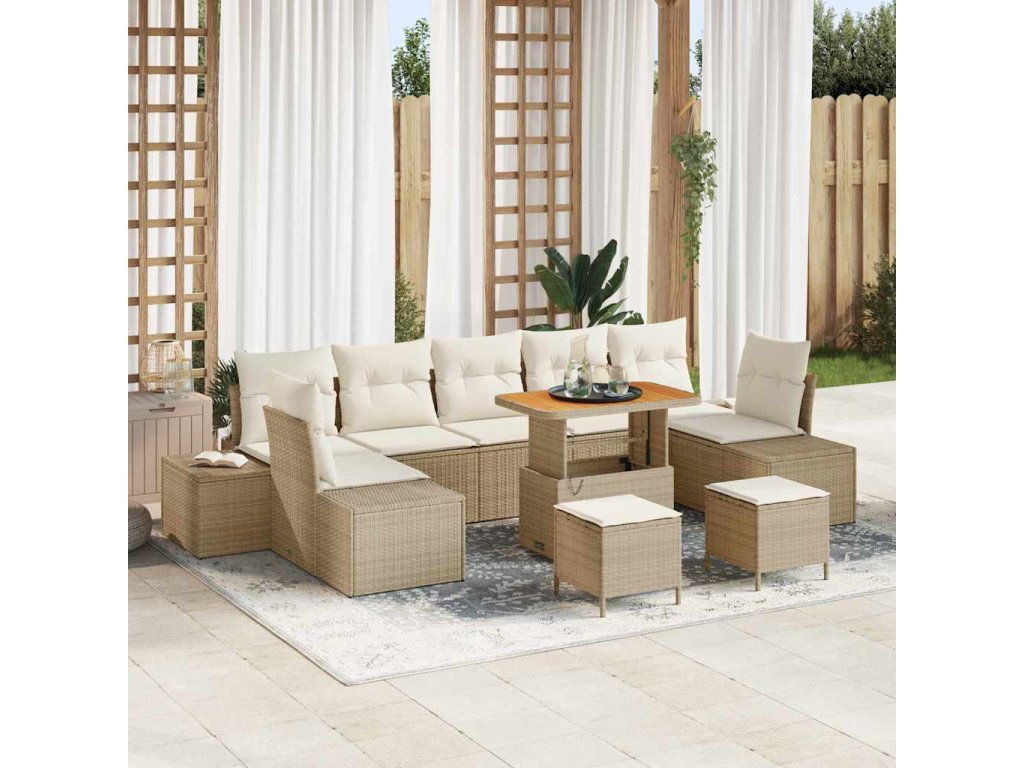 Sada zahradních pohovek s polštářem 10 pcs Béžová Poly ratan 3362771