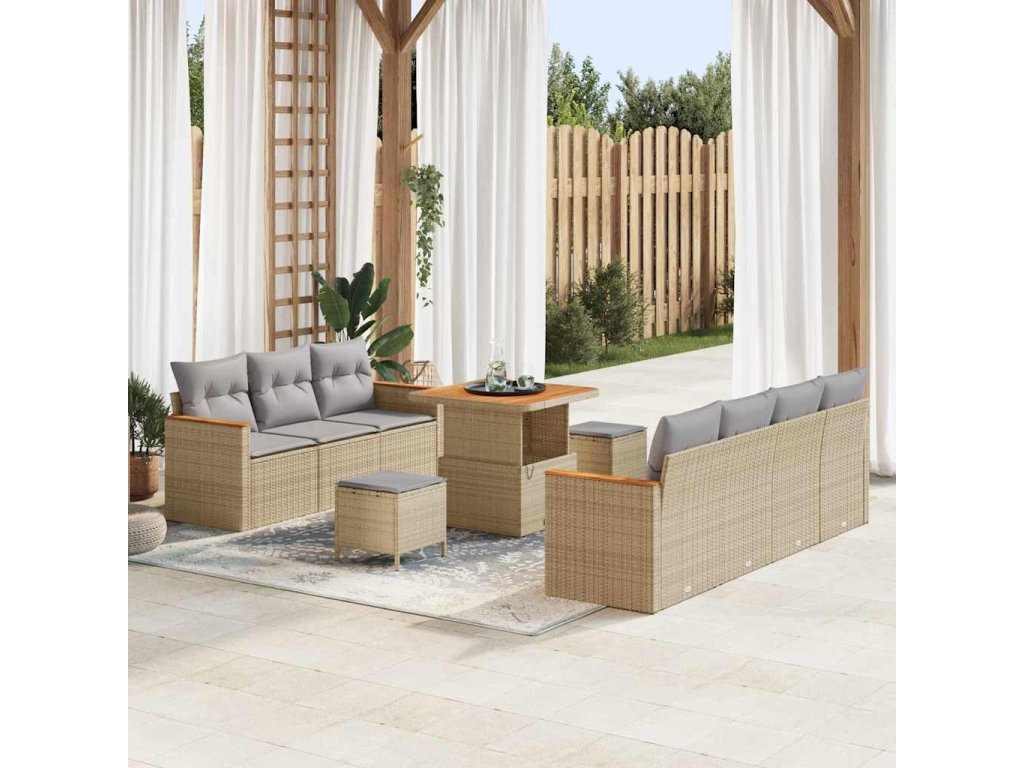 Sada zahradních pohovek s polštářem 10 pcs Béžová Poly ratan 3363007