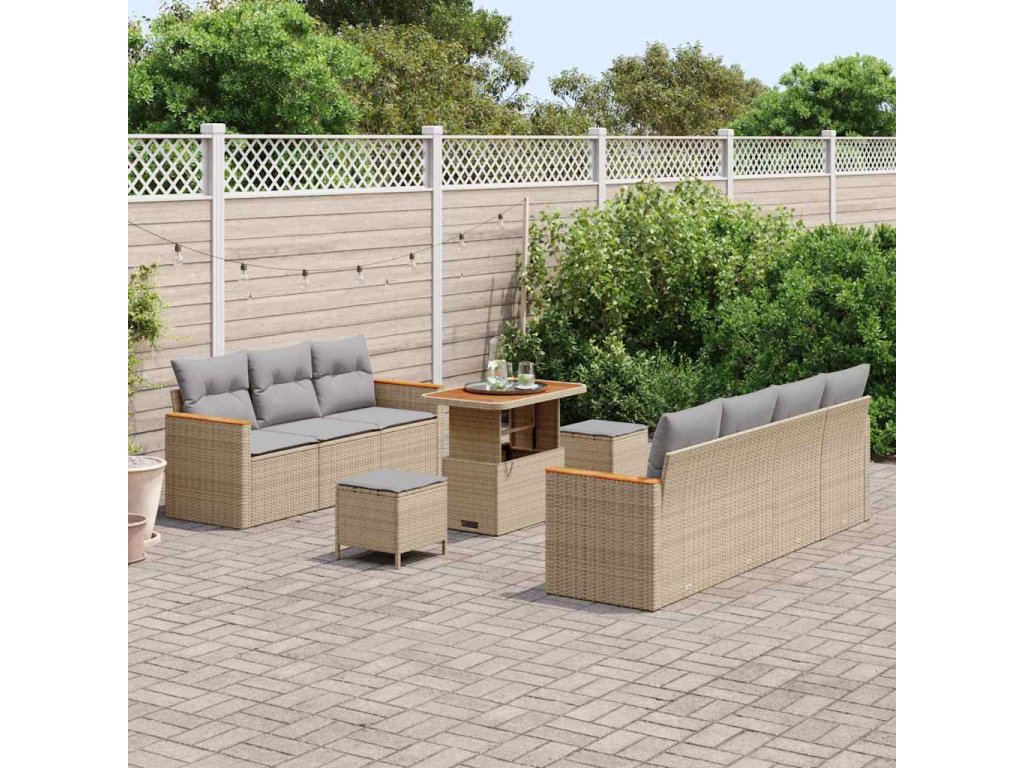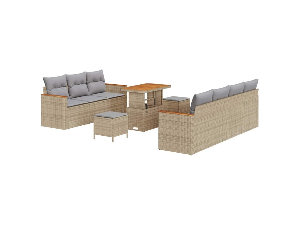Sada zahradních pohovek s polštářem 10 pcs Béžová Poly ratan 3363012