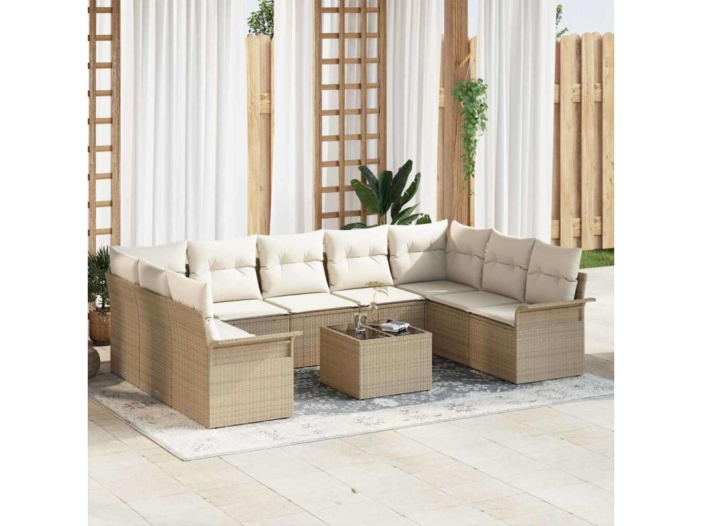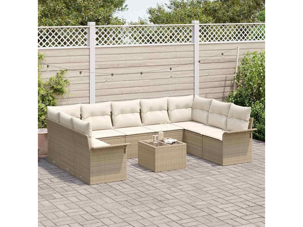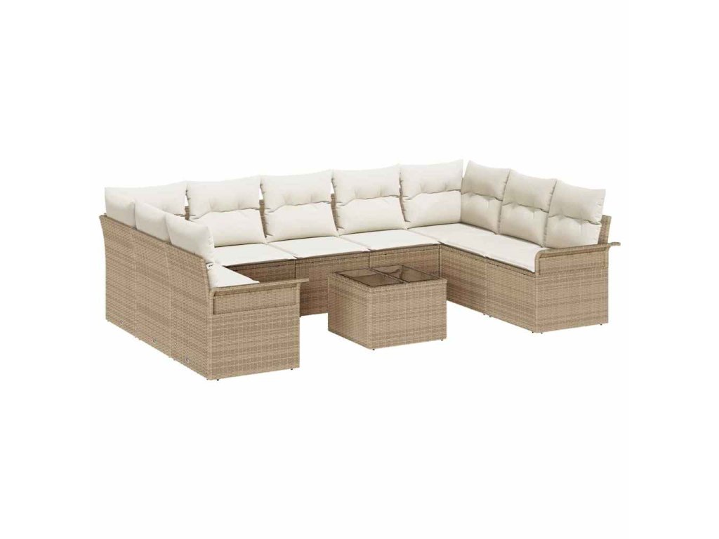 Sada zahradních pohovek s polštářem 10 pcs Béžová polyratan 3345531
