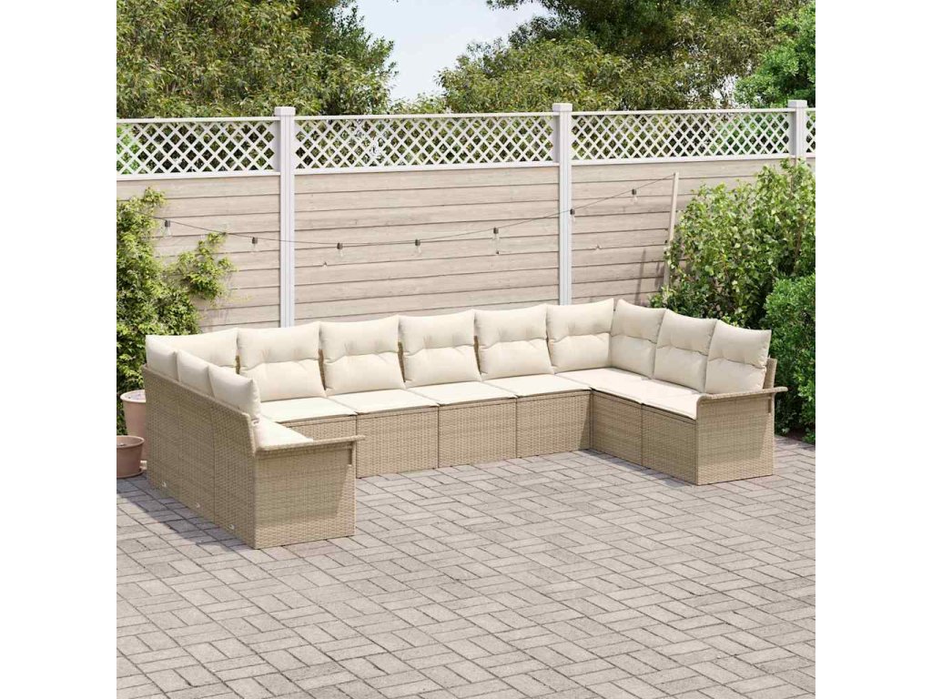 Sada zahradních pohovek s polštářem 10 pcs Béžová polyratan 3345541